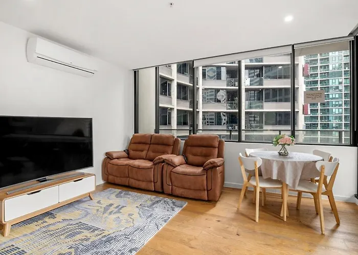 2Br Near Southern Cross Station And Skybus Stop appartement heeft een balkon en een zitruimte met airconditioning voor optimaal comfort. 2Br Near Southern Cross Station And Skybus Stop appartementen hebben een apart toilet en een douche voor uw comfort. Er zijn ook een droger.